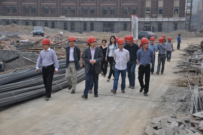 周国模一行实地查看了学院教学楼、实验楼、运动场馆、师生宿舍区、食堂、大礼堂、河道治理等施工现场,听取了相关部门关于学院施工进展情况、存在的困难以及今后的工作安排的情况汇报。