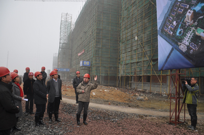 谭志桂一行先后视察了文理教学组团、运动场馆、生活社区、食堂、图书馆和行政楼,详细了解了各施工点的工程进展,听取了相关标段施工管理人员的情况汇报。据工作人员介绍,学院新校区建设工程从去年5月份动工以来,已完成投资4.5亿元,完成总工程量的60%左右,在农历年底能完成教学区、行政区和生活区的28幢主体建筑的结顶工作。