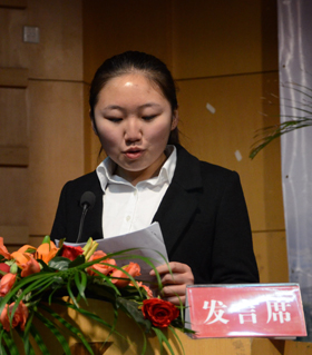 园林创业实验111班的叶沁作为学生代表发言。她代表所有受表彰的同学向一直关心、培养他们的领导