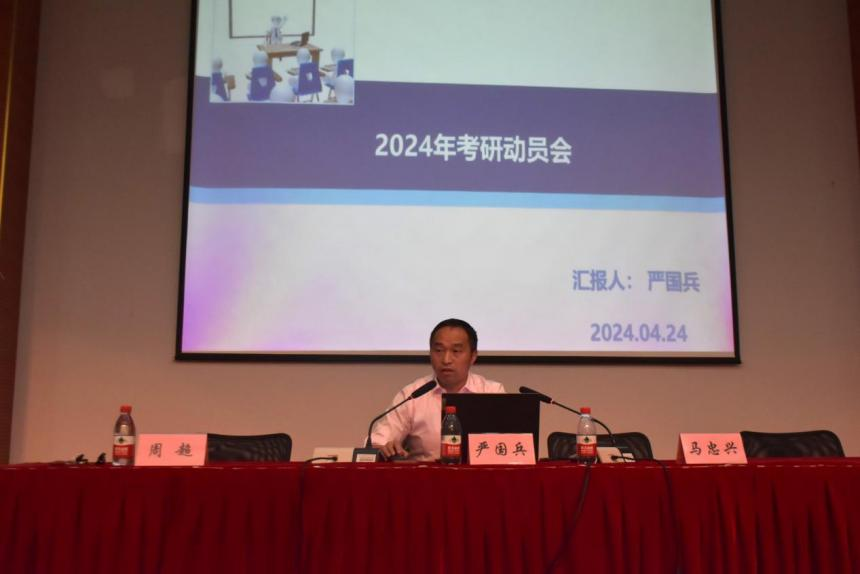 严国兵作了主题讲话。他介绍了金沙官网历年来的考研情况,指出要以考研为抓手,助推学风建设。同时,为同学们讲明了为什么要考研、如何精准定位考研,他用自身的考研经历和经验激励同学们努力向前、坚持不懈、全力备考,也向学生表态学院会力所能及为考研学生提供帮助,让同学们切身感受到了学院的关心和支持。
