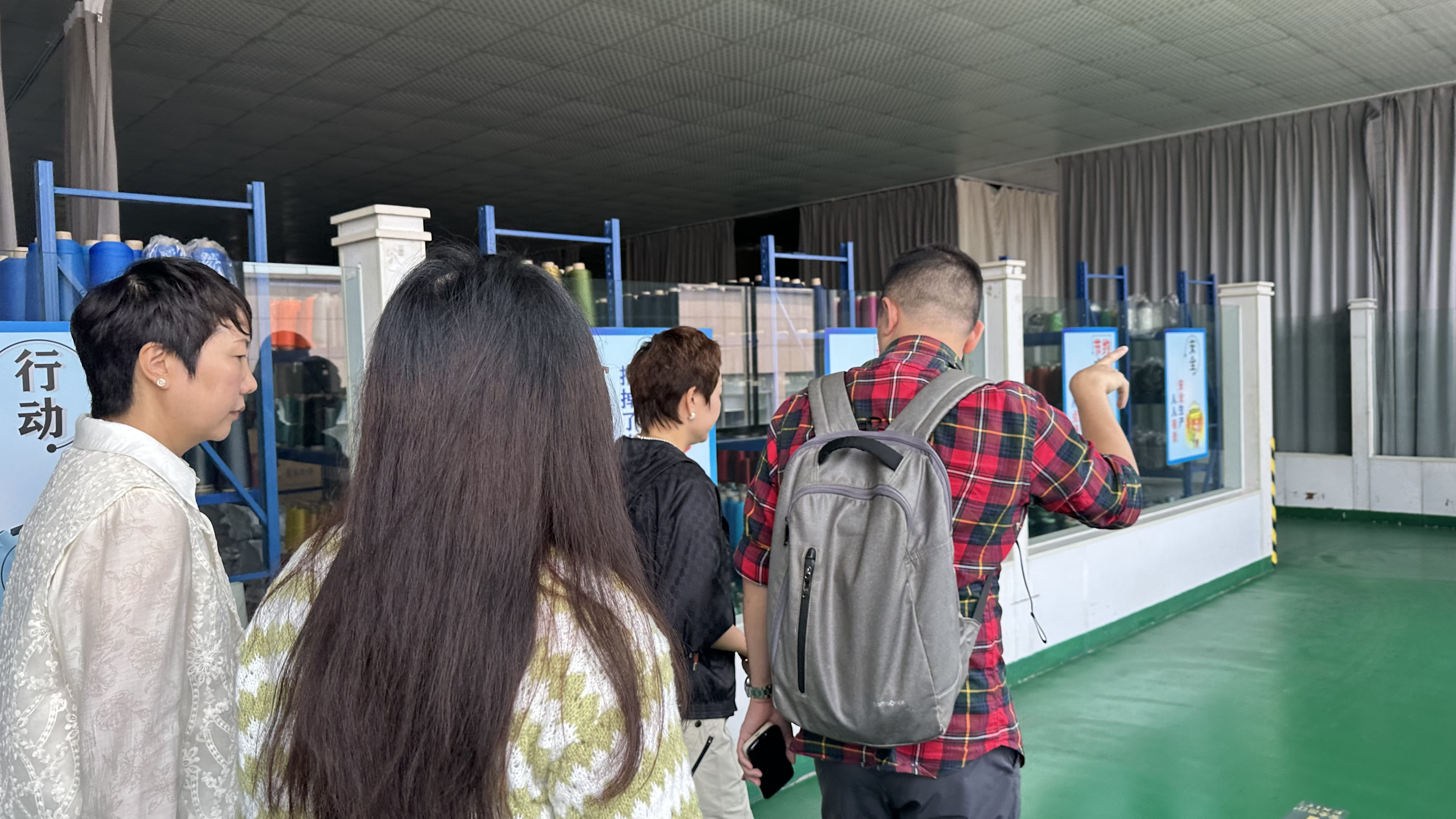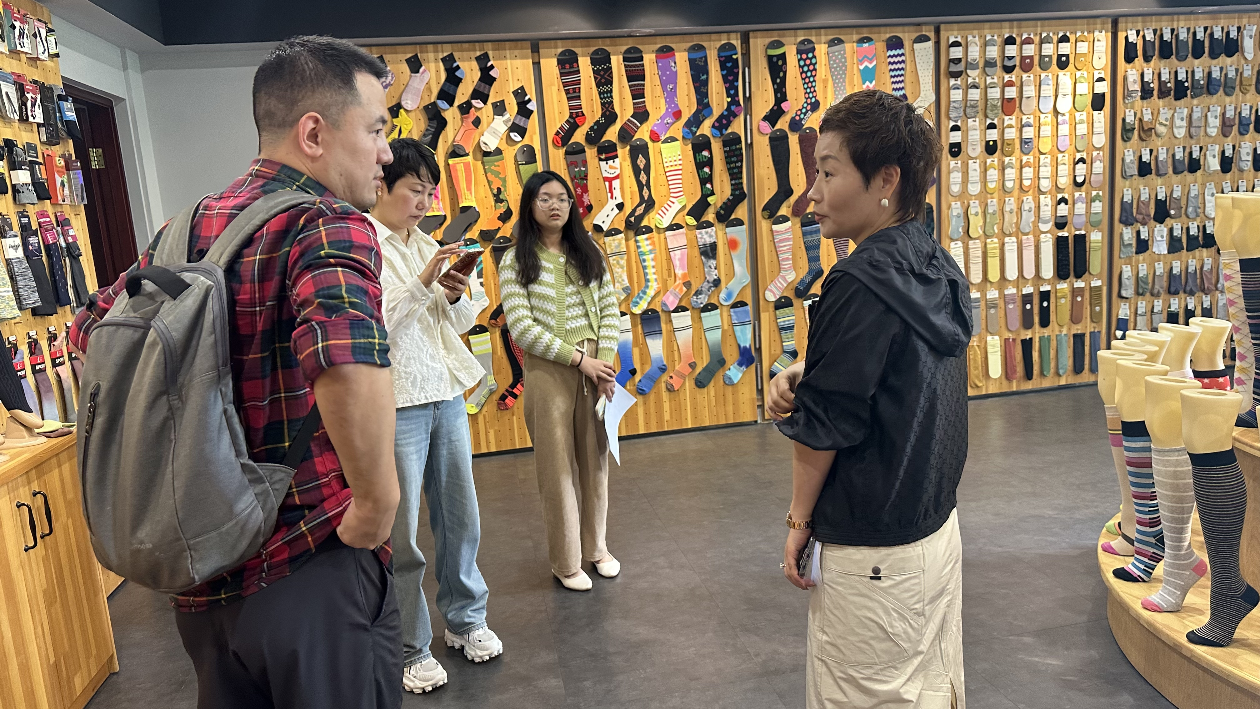 走访过程中,企业内销部负责人对参与本次走访的学生做了简单的面试交流,并带领袜艺学院人员参观了企业加工车间及办公区域。