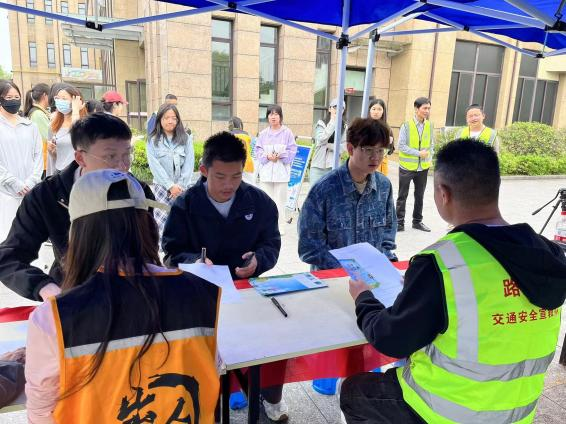 为提升学院师生的法治意识、安全意识、文明意识,预防和减少校园道路交通事故的发生,营造良好的校园安全环境,全力打造学习校园道路交通安全的浓厚氛围,4月27日,人文学院、马克思主义学院,公共保障部携手诸暨市路路交通安全宣教志愿服务队共同开展“交通安全进校园,共筑师生平安路”道路交通安全知识宣传教育活动。