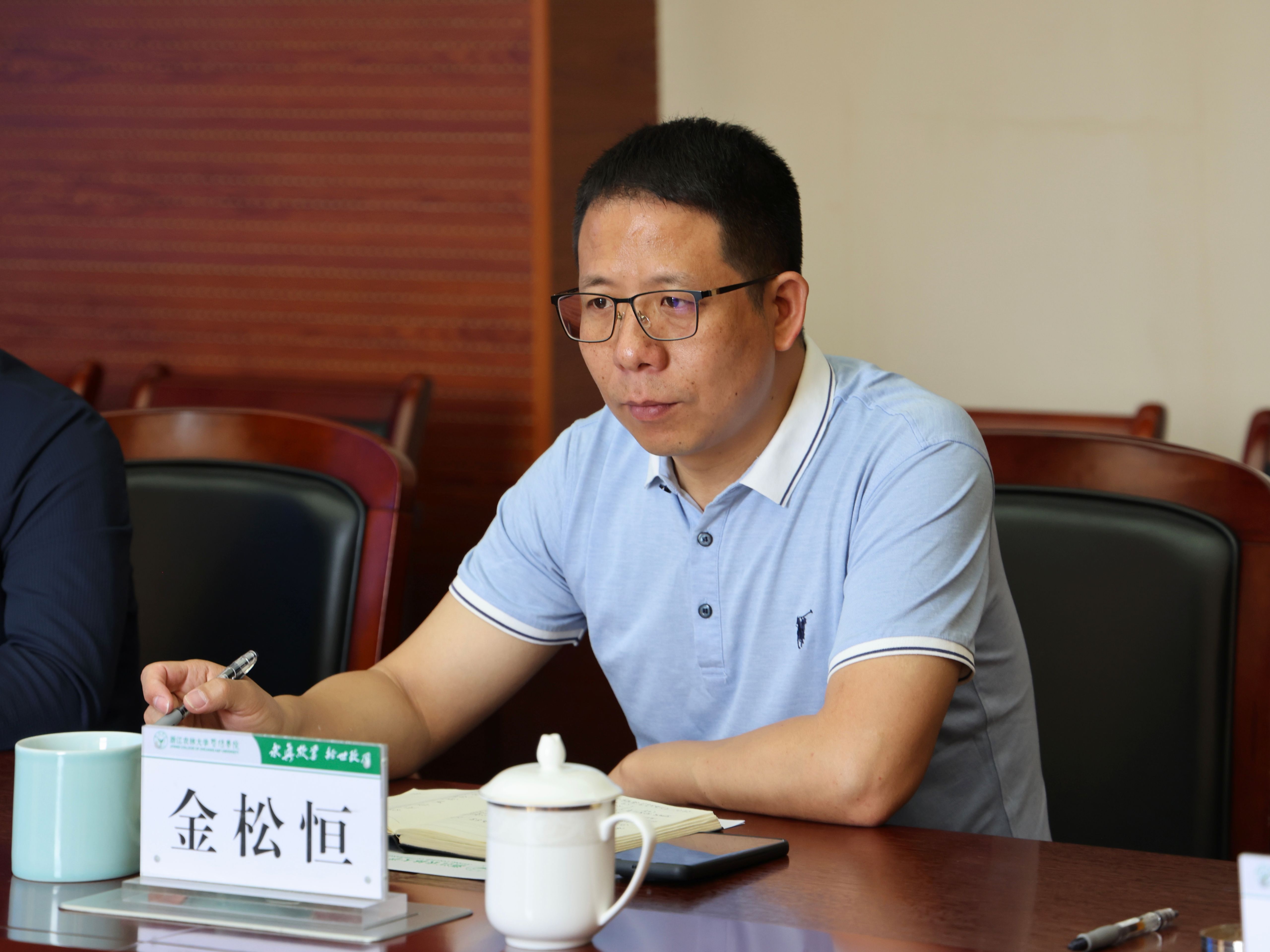 5月10日上午,绍兴市科技局党组成员、二级调研员严建林一行来学院开展毛竹、珍珠等农业重点产业科技情况调研交流,诸暨市科技局副局长阮志浩等人陪同。会议由学院副院长金松恒主持,相关部门负责人参加座谈会。