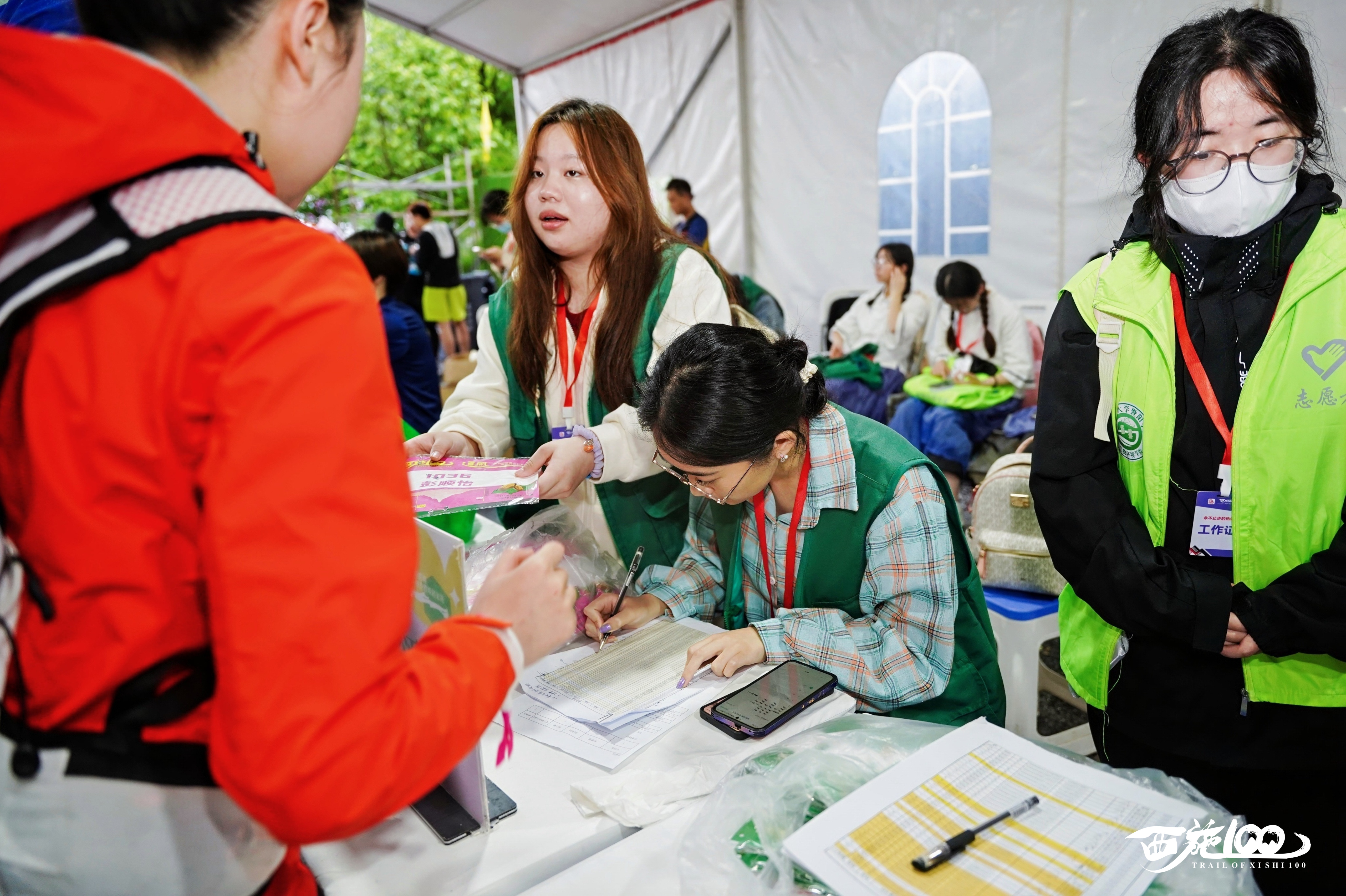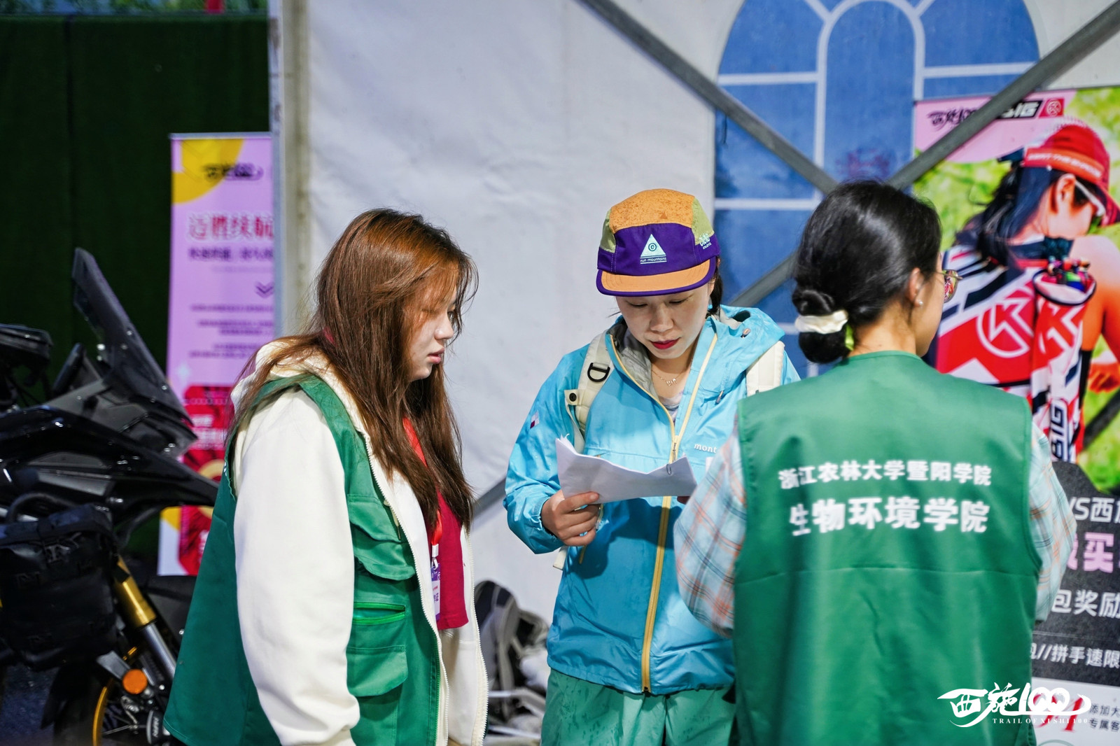 比赛当天,踏着凌晨的微光,生物环境学院的“绿马甲”们早早集结,前往赛场进行赛事前期准备工作。面对多变的天气条件,志愿者们仍有条不紊地开展工作服务,用实际行动践行“奉献、友爱、互助、进步”的志愿者精神。他们的身影活跃在赛事的每个角落,从赛前的存取包,开赛的拉线,到赛中各点打卡补给,赛后的挂奖牌,志愿者们积极参与,用微笑和关怀为比赛选手加油鼓励。
