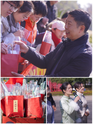随后,学院领导为学生们送上精心准备的考研加油包,有象征着“妙笔生花”的考试专用笔、寓意“心想事成”的橙子和“平安研顺”的苹果等,饱含着学院对学子们的美好祝愿,为其增添信心与力量。在送考队伍中,毕业班辅导员集体身着旗袍,为考研学子温馨送考,寓意着“旗开得胜”,她们以这身充满寓意的着装,向同学们传递着美好的期许。