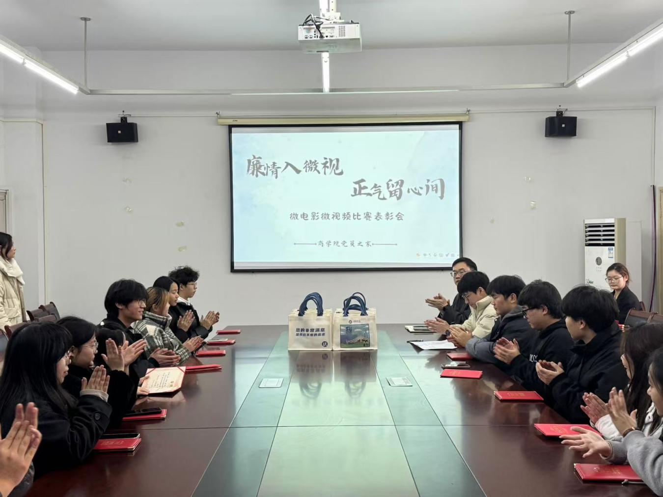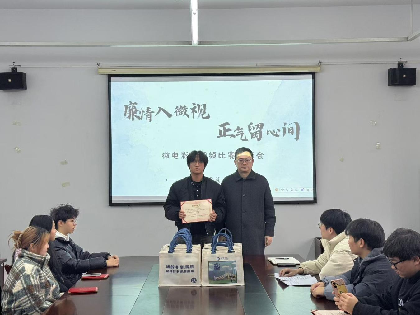 为深入学习贯彻党的二十届三中全会精神和二十届中央纪委三次全会精神,持续巩固党纪学习教育成果,进一步加强廉政文化建设,涵养风清气正的育人环境,12月27日,由商学院党总支主办,商学院党员之家管委会、大学生清风廉韵知行社承办的“廉情入微视,正气留心间”微电影微视频比赛圆满落下帷幕。本次表彰会在人文3302会议室召开。