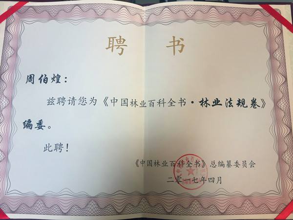 金沙官网周伯煌教授被聘为《中国林业百科全书•林业法规卷》编委